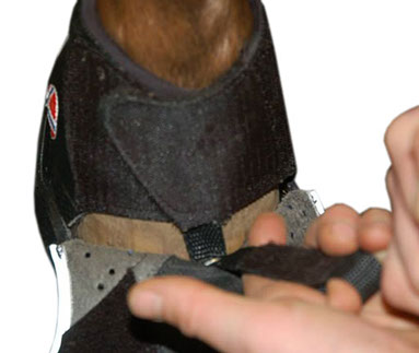 For the last two years I have been trying to find a pair of boots for my ex-racehorse. So far I have bought a pair of renegades and a made to measure pair of hoof wings and have hired marquis, cavallo, boa’s and easyboot back country’s. All to no avail. My horse has typical TB feet, flat, slightly under run heels and wider than long.